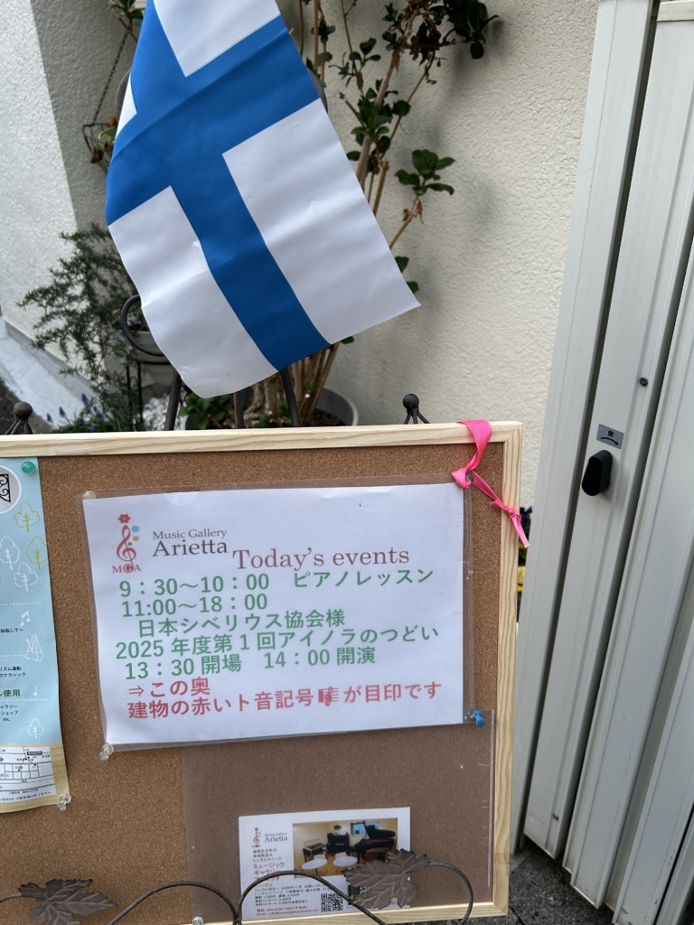 3月28日、日本シベリウス協会様が当ミュージックギャラリーアリエッタをご利用いただき、「2025年度第1回アイノラのつどい」 が開催されました。コンサートやミーティングで数回ご利用いただき、ありがたいです。私は会員ではないのですが協会員の方々にはたいへんお世話になっており、フィンランド、エストニアの演奏ツアーではライターとしてご一緒させていただいたこともあります。